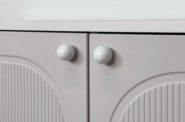Корпус выполнен из ЛДСП толщиной 16 мм, фасады изготовлены из МДФ в плёнке ПВХ и украшены фрезеровкой, которая придаёт мебели выразительность и подчёркивает стиль серии Милана. Оригинальные круглые ручки и опоры дополняют дизайн, делая тумбу визуально лёгкой и современной.